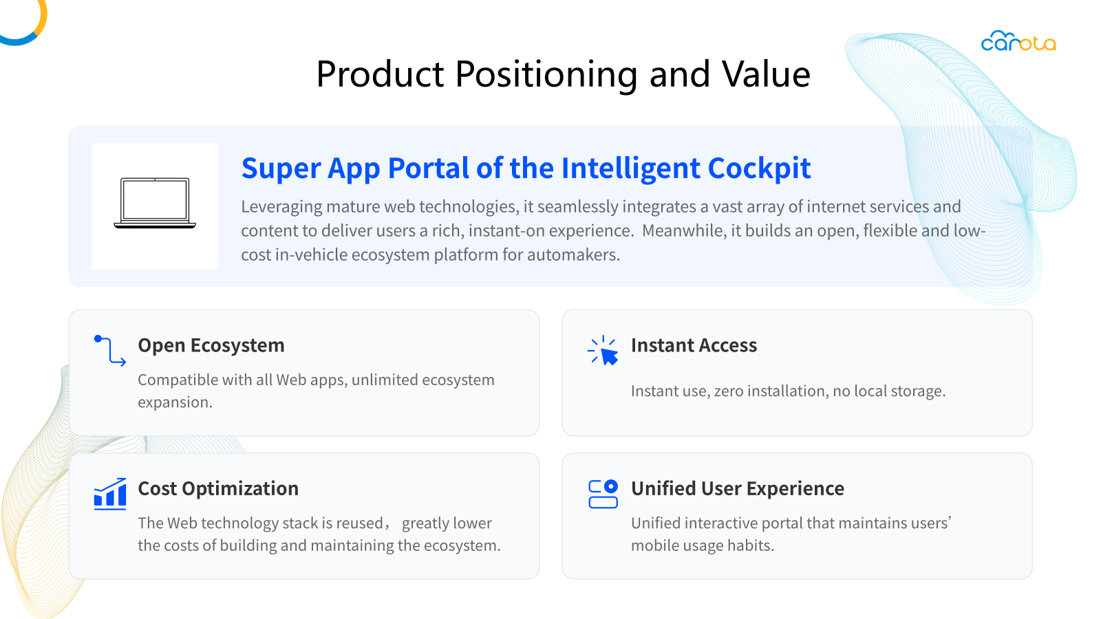 Carota has maintained long-term in-depth cooperation with BAIC. Previously, we provided OTA-related testing services for the BAIC Magic Cube model, conducting comprehensive verification on critical capabilities including vehicle OTA upgrade processes and functional stability. Leveraging our stable and compliant technological advantages, we have effectively supported BAIC in full-vehicle software lifecycle management and iterative upgrades of intelligent features. Recently, Carota will supply a production-grade, embedded in-vehicle browser solution tailored to BAIC’s full-platform smart cockpit architecture. Seamlessly integrated into the cabin system, the solution delivers smooth interaction, efficient loading, and cost optimization. It enables users to access information, connect to ecosystems, and experience scenario-based services more conveniently in the vehicle, further enhancing the practicality and technological appeal of the intelligent cabin.