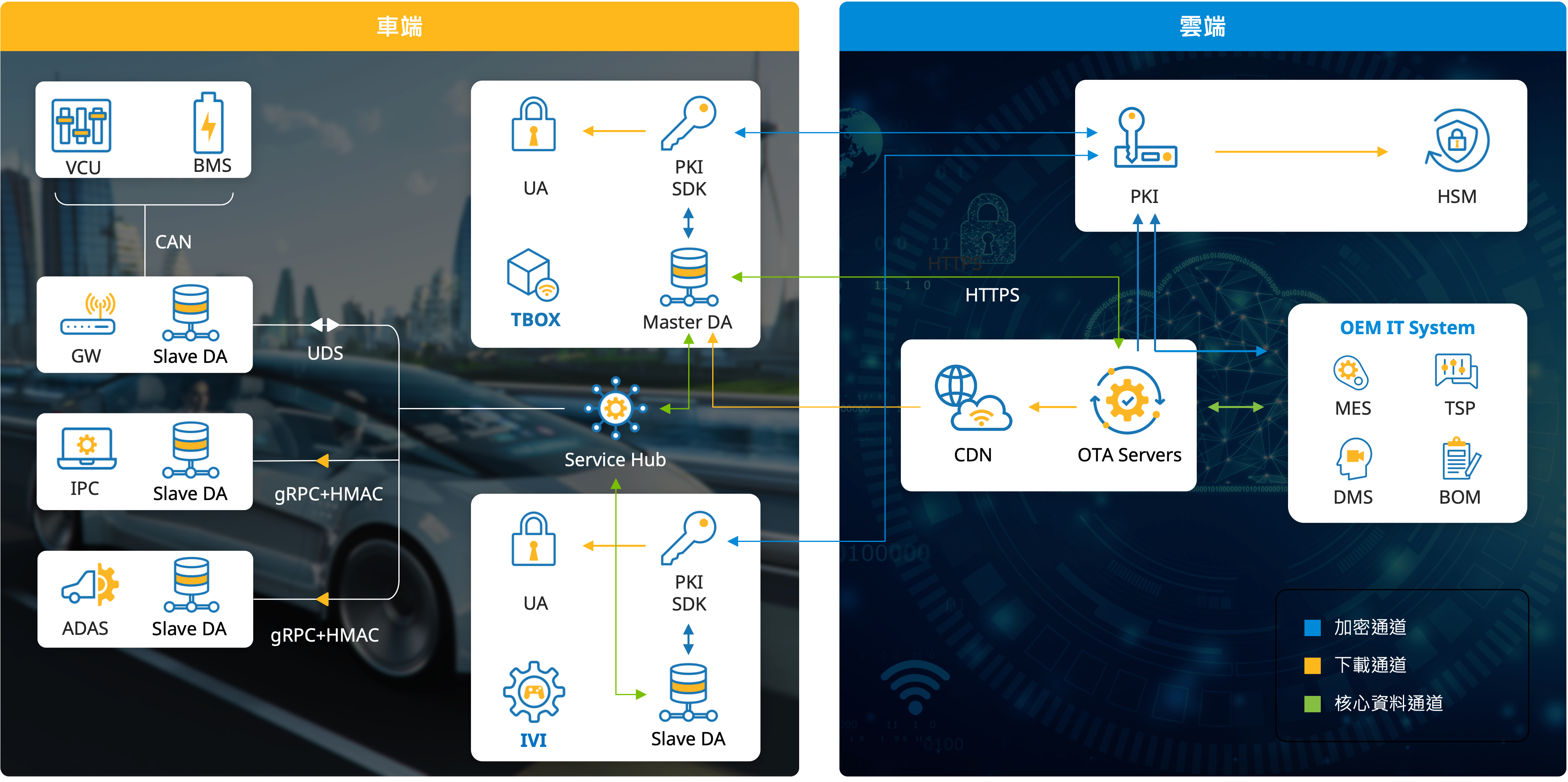 本屆大會上,科絡達聚焦OTA解決方案,帶來自有研發的OTA系統架構——可一站式從雲端到車端,提供完整靈活的OTA解決方案,以穩定可靠的安全技術、靈活的兼容性、完備的安全體系,為車廠無縫接軌,快速導入OTA技術為車聯網系統保駕護航。