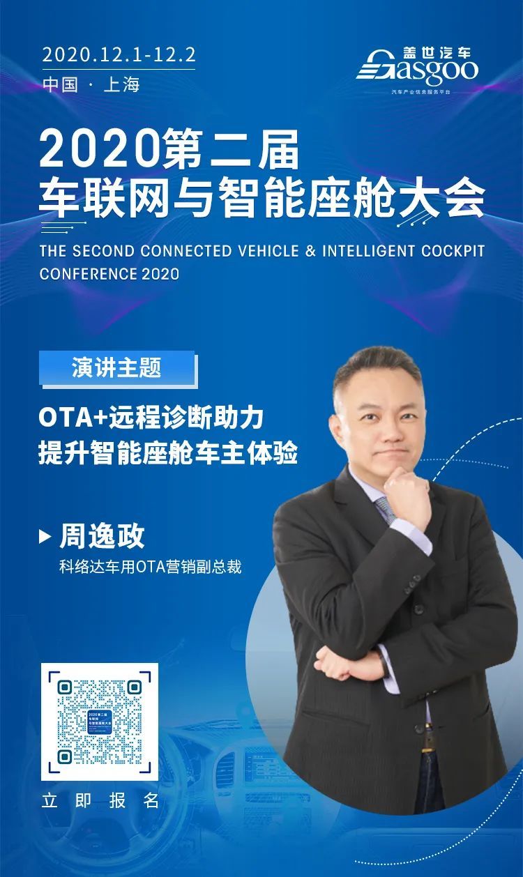CAROTA科絡達中國車用服務營銷副總裁周逸政將出席此次大會並將發表題為 “OTA+遠程診斷,助力提升智能座艙車主體驗” 的主題演講。