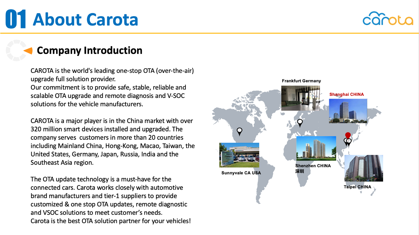 Additionally, Carota provides remote diagnostics and VSOC solutions including remote monitoring, diagnosis, early warning and data analysis and OTA update services. Article translated and reprinted from ST automotive WeChat. https://mp.weixin.qq.com/s/uNv6eCGXpDukLcSAWEufrg
